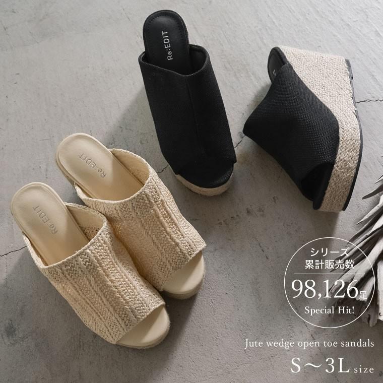 アウトレットセール サボサンダル レディース ウェッジソール オープントゥ ジュート コルク フリンジ クッションソール 116186 reedit リエディ 通販 yahoo ショッピング