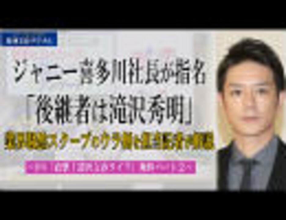 ジャニーズ 喜多川社長が滝沢秀明を後継指名 ニューストゥデイ