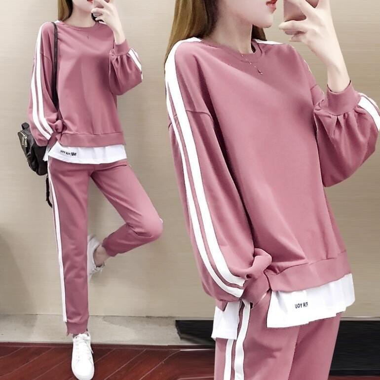 ジャージ レディース 上下 セット おしやれ セットアップ 3点セット 春秋 40代 長袖 アウター tシャツ 長ズボン スウェット 大きいサイズ 運動服 韓国風 着痩せ