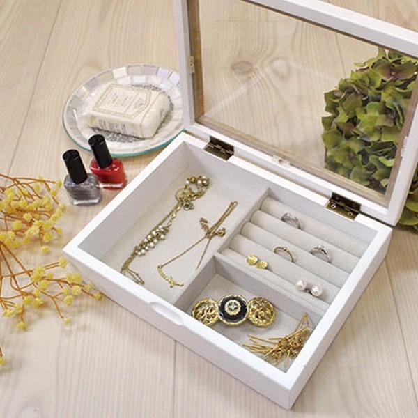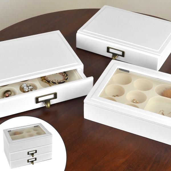 アクセサリー 収納 アクセサリーケース 木製 ガラスふた アクセサリーボックス おしゃれ ジュエリーボックス 白 大容量 2段 miaslimjubox シズ ショッピングサイト ヤフー店 通販 yahoo ショッピング