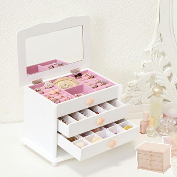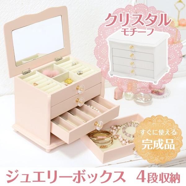 ジュエリーボックス アクセサリー 収納 蓋付 ケース ピアス 収納 ケース アクセサリーケース ホワイト ピンク おしゃれ 木製 大容量 4段 取っ手クリスタル