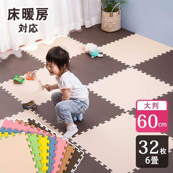 ジョイントマット 大判 60cm 32枚 6畳 安全検査済み 防音 騒音 吸収 ベビー マット 全9色 厚さ1cm 赤ちゃん クッションマット サイドパーツ付 weimall jm60bb8 weimall 通販 yahoo ショッピング