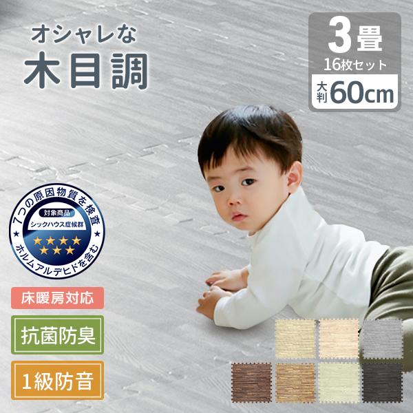 ジョイントマット 木目調 大判 60cm 16枚 ベビー マット 防音 騒音 吸収 厚さ1cm 赤ちゃん クッションマット 抗菌 防臭 fca0160u4 pickupplazashop 通販 yahoo ショッピング
