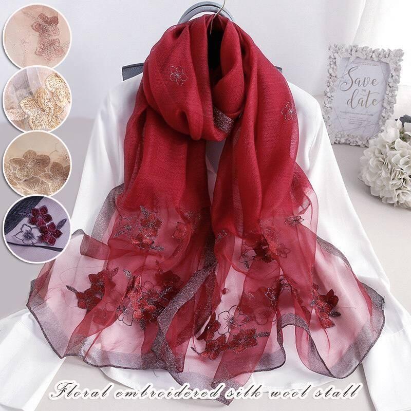 ストール エレガントな花柄刺繍ウール大判ストール 結婚式 レディース 秋 冬 秋冬 刺繍 ウール ショール スカーフ ギフト プレゼント 母の日 プレゼント ho277 ストール専門 fjg 通販 yahoo ショッピング