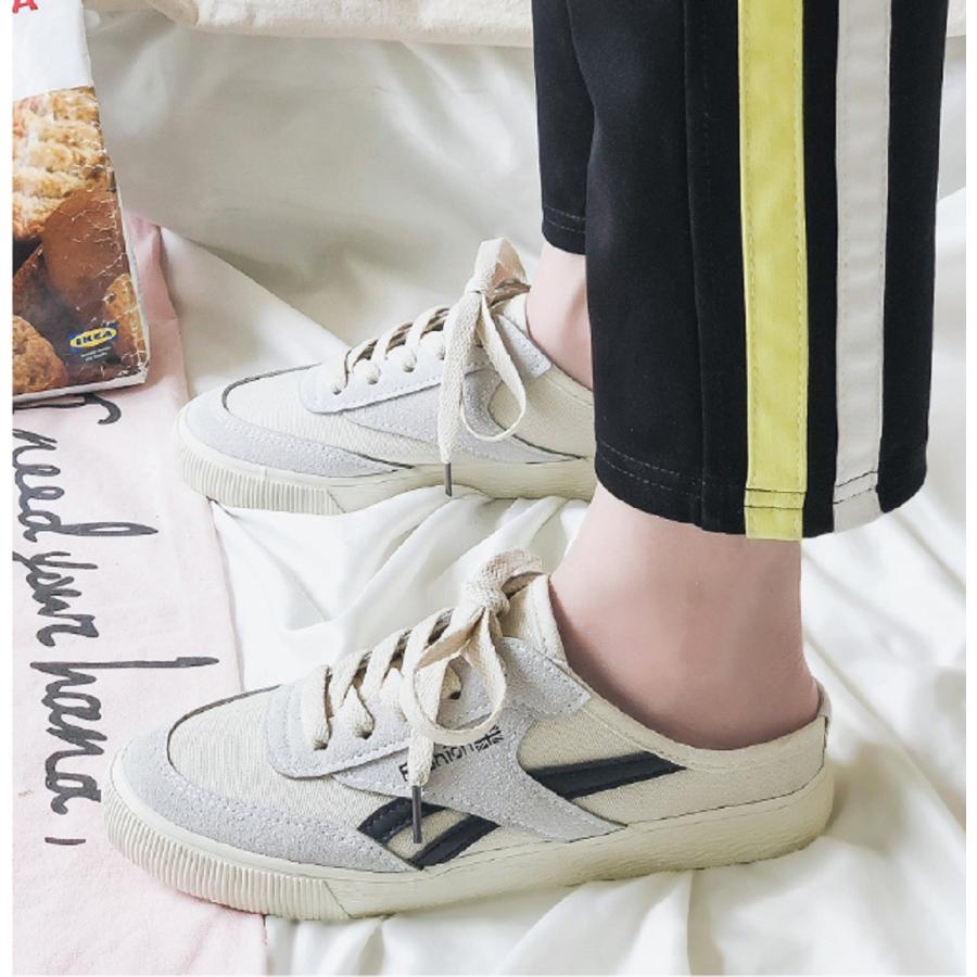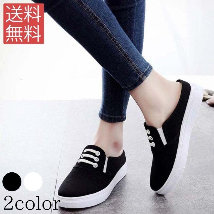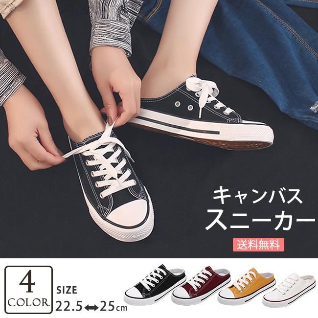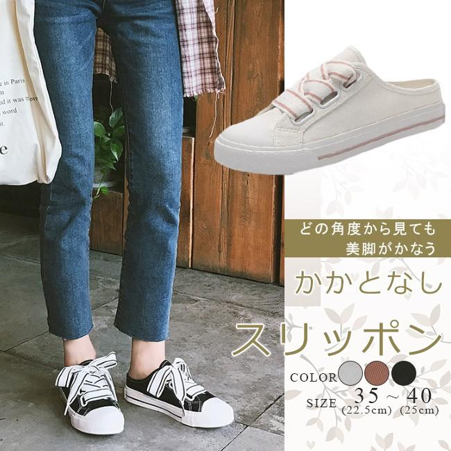 スリッポン レディース スニーカー かかとなし 編み上げシューズ レースアップ キャンバス 無地 フラット カジュアル 履きやすい 美脚 可愛い おしゃれ 02022003btfbx09 ngytomato 通販 yahoo ショッピング