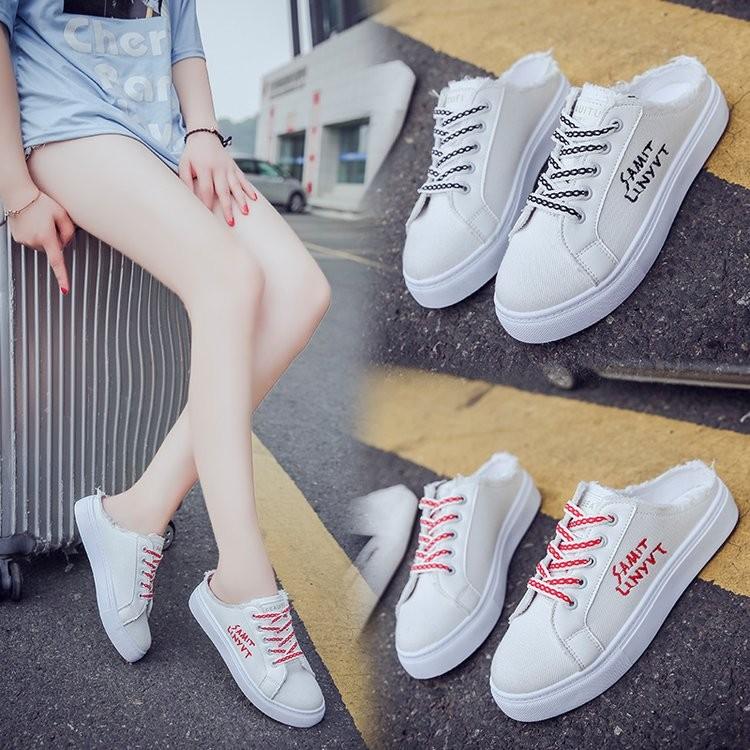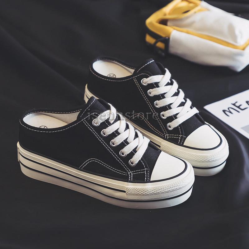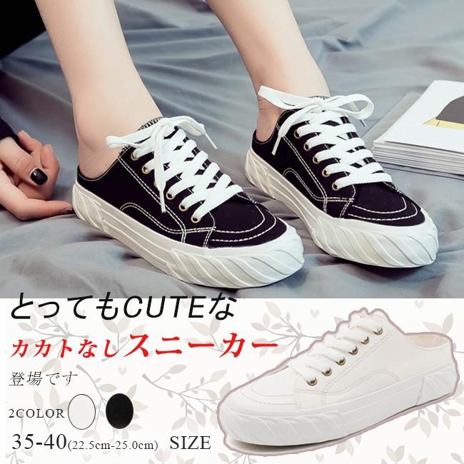 かかとなしスニーカー レディース 厚底 サンダル ローカット シューズ 靴 プチプラ レースアップ 無地 軽量 歩きやすい 疲れない 春 夏コーデ白 yhxz 04 サンフラワーハウス 通販 yahoo ショッピング