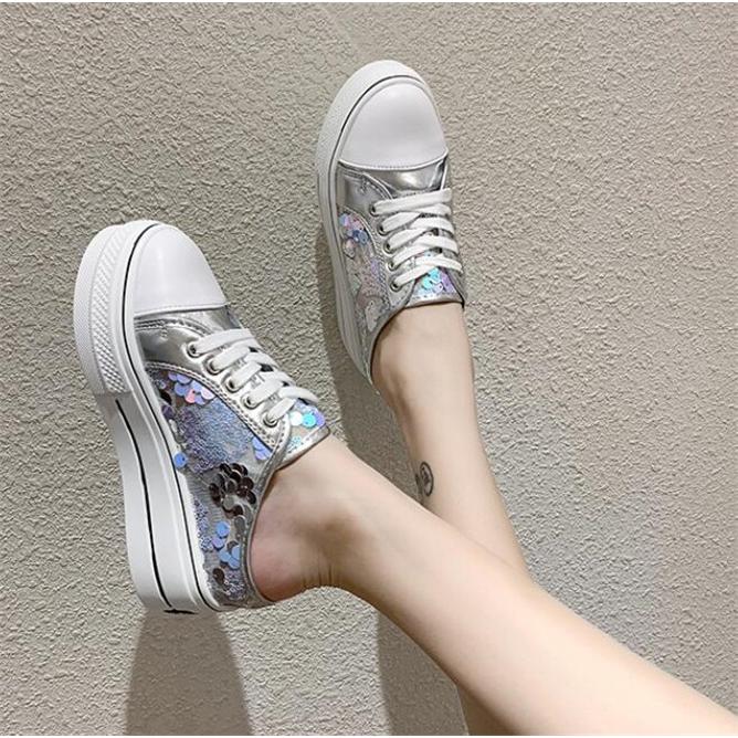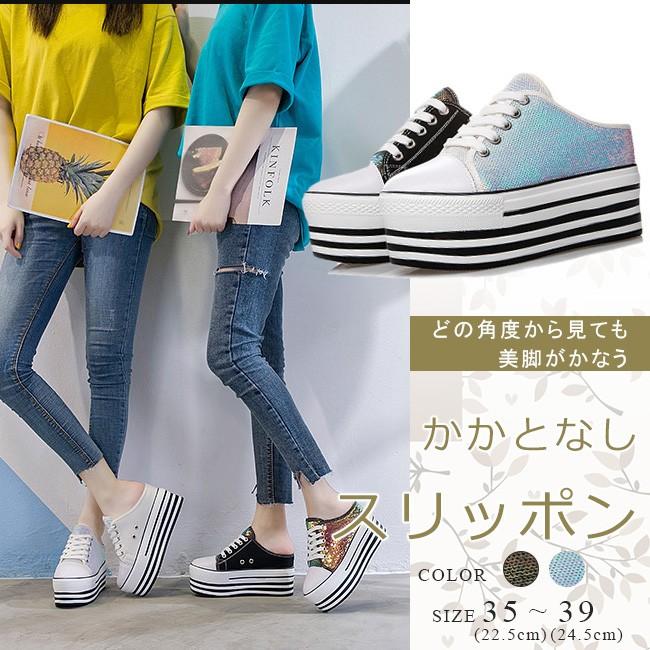 スリッポン レディース 厚底 インヒール かかとなし レースアップ 編み上げシューズ スリッパ キラキラ フラット カジュアル 履きやすい 美脚 おしゃれ 全2色 01011904btbc05 ngytomato 通販 yahoo ショッピング