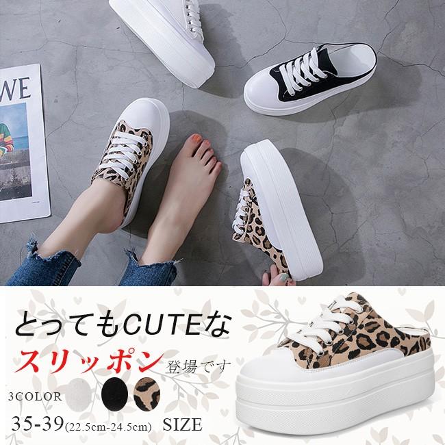 スリッポン レディース 厚底 かかとなし 編み上げシューズ スリッパ フラット カジュアル 履きやすい 美脚 可愛い おしゃれ ホワイト ブラック ヒョウ柄 全3色 01011904btbc13 ngytomato 通販 yahoo ショッピング