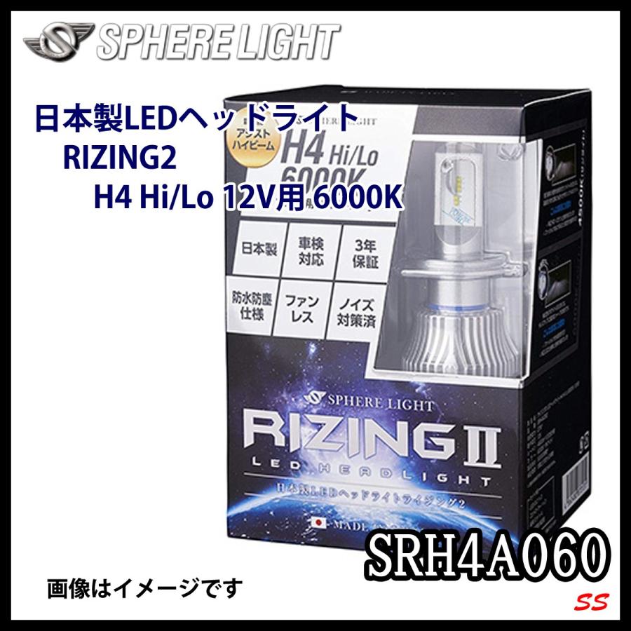 スフィアライト 日本製 車用ledヘッドライト rizing2 ライジング2 h4 hi lo 12v用 4500k 3年保証 4800lm srh4a045
