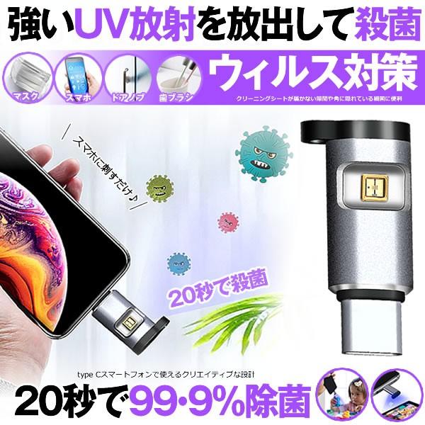 殺菌ライト ブラック 紫外線 細菌 ウイルス対策 uvライト 除菌ライト 99 簡単 スマホ type c 消毒 マスク 家 オフィス 車 potajyokin bk