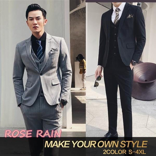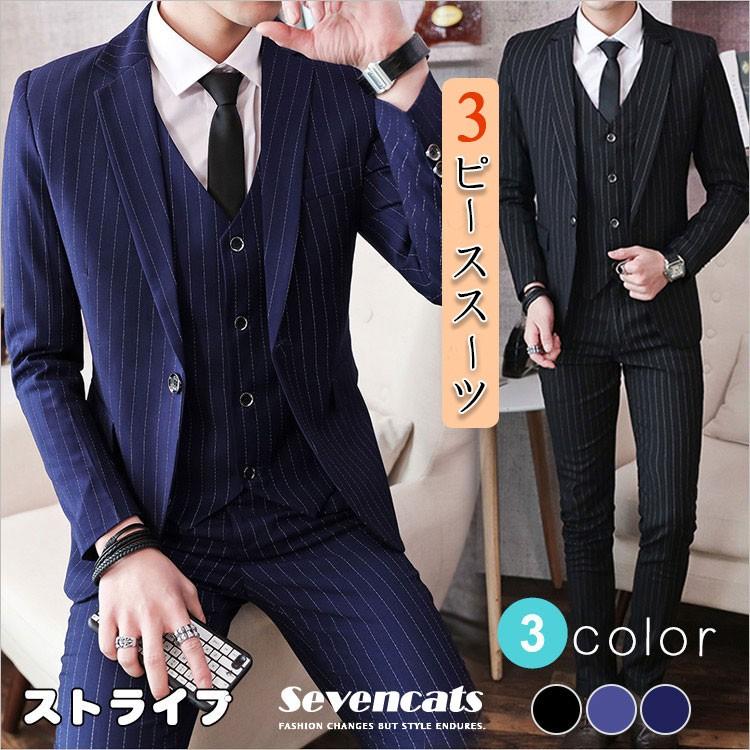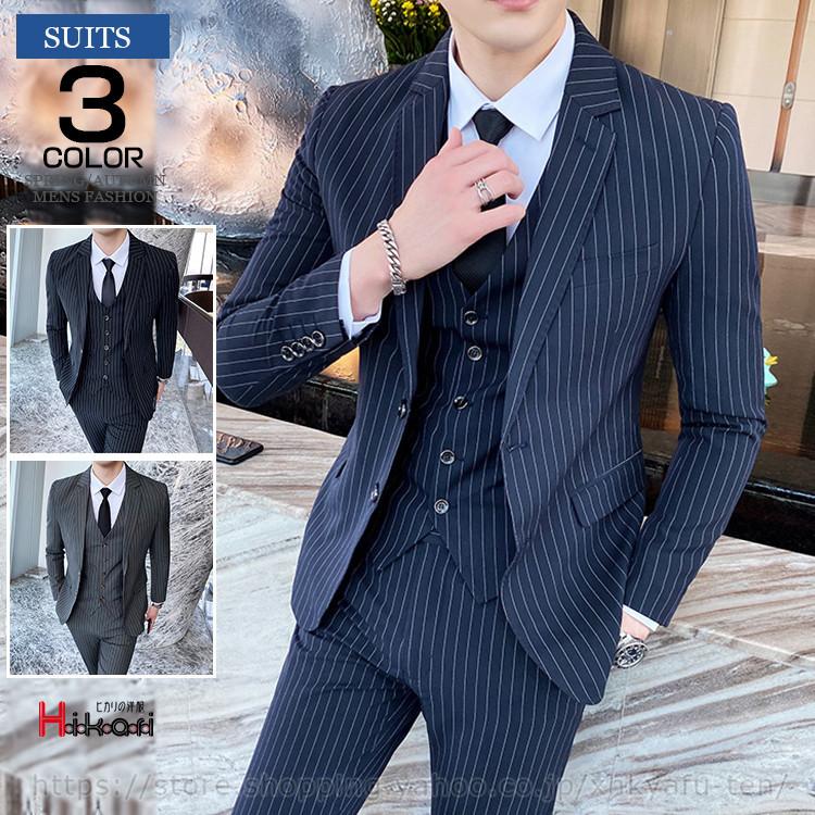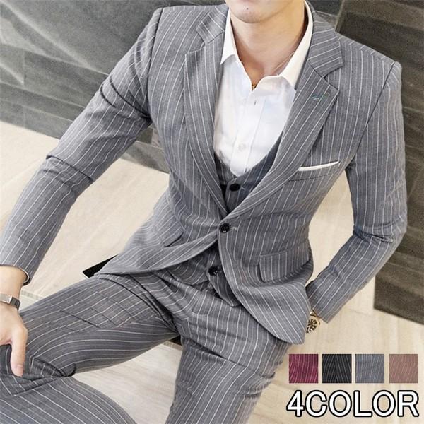 ビジネススーツ メンズ スリーピース スーツセット ベスト付き スリム ストライプ 冠婚葬祭 フォーマル 通勤 フォーマル シングル 薄手 春 夏 秋 4色 b519 the best one 通販 yahoo ショッピング