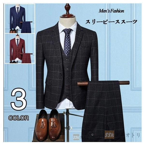 3ピーススーツ メンズ チェック柄 スリーピーススーツ 3点セット ビジネススーツ フォーマル 紳士服 結婚式 通勤 スリム 大きいサイズあり he523 赤坂ville 通販 yahoo ショッピング