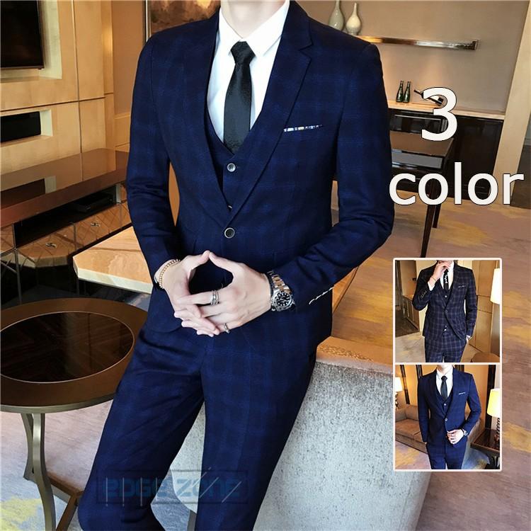 ビジネススーツ スリーピーススーツ 3ピーススーツ 3点セット チェック柄 メンズスーツセット フォーマル セットアップ イギリス風 細身 紳士服 結婚式 入学式 b766 the best one 通販 yahoo ショッピング