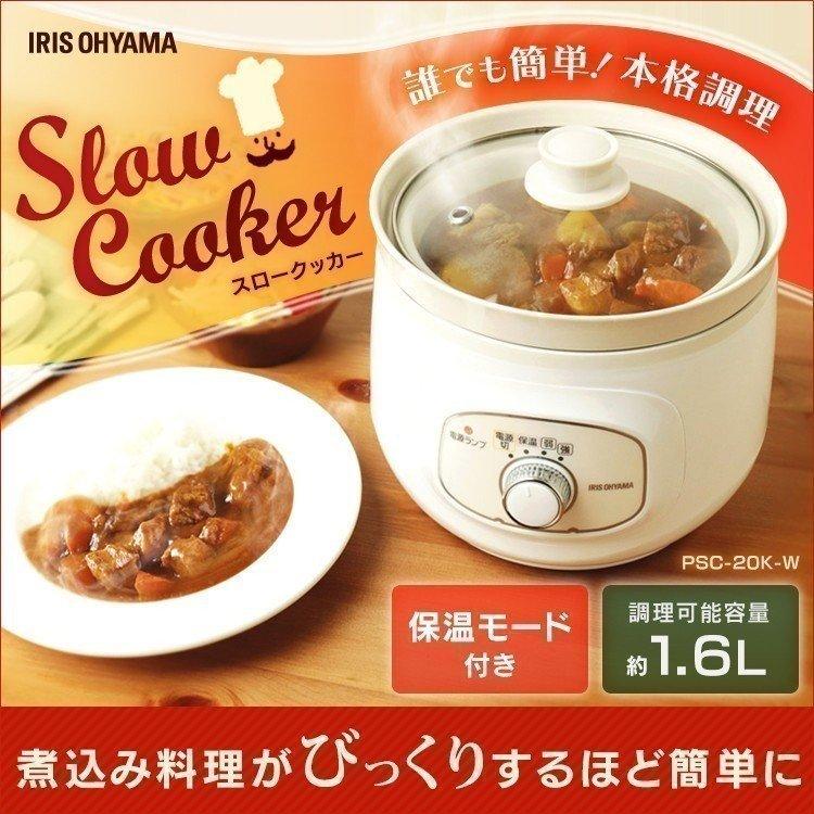 電気鍋 アイリスオーヤマ スロークッカー 鍋 調理鍋 調理機器 時短調理 料理 時短 おしゃれ シンプル 一人暮らし ホワイト psc 20k w アイリスプラザ paypayモール店 通販 paypayモール