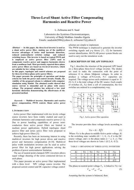 three level shunt active filter compensating harmonics and