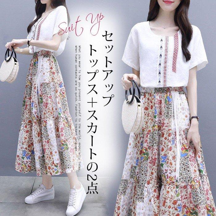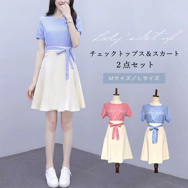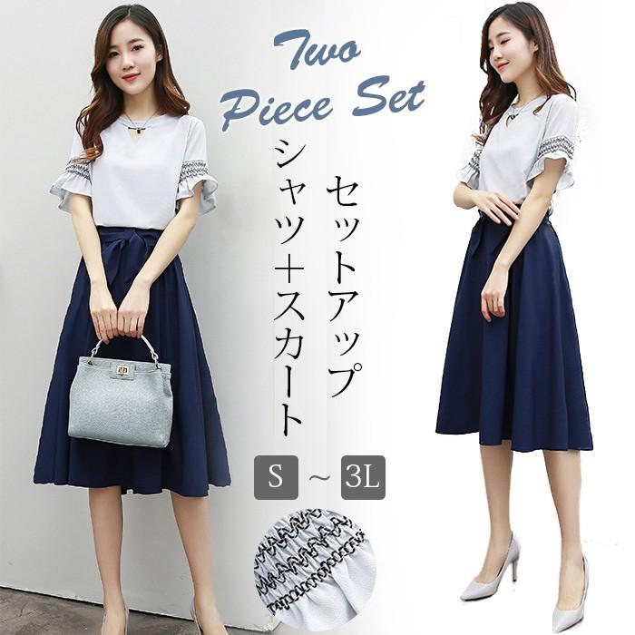 セットアップ スカート tシャツ 大きいサイズ aライン ミニスカート タイトスカート ウエストリボン フレアスカート ショート丈でも安心 2点セット y1907kf017 アジアンストア 通販 yahoo ショッピング