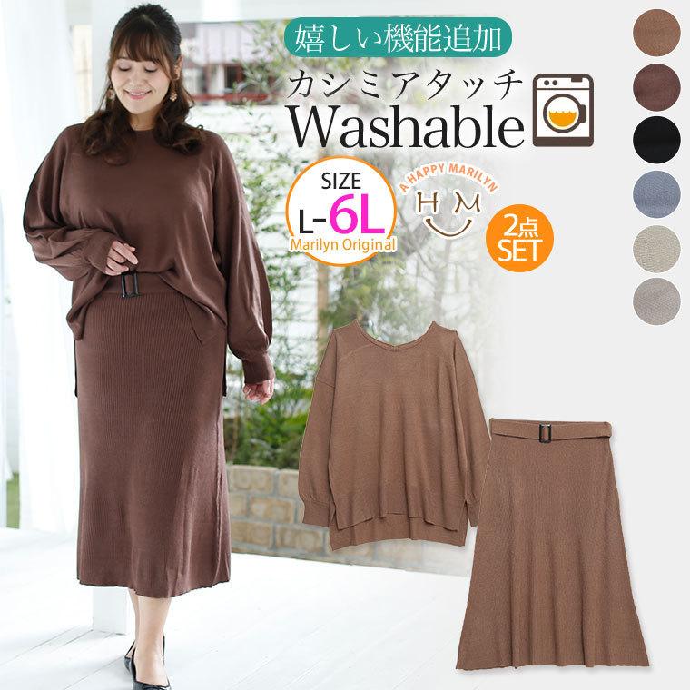 大きいサイズ レディース セットアップ カシミアタッチニット おうちで洗える 長袖トップス スカート ベルト付 上下セット 秋冬服 30代 40代 50代 ma 473097 大きいサイズ レディース マリリン 通販 yahoo ショッピング