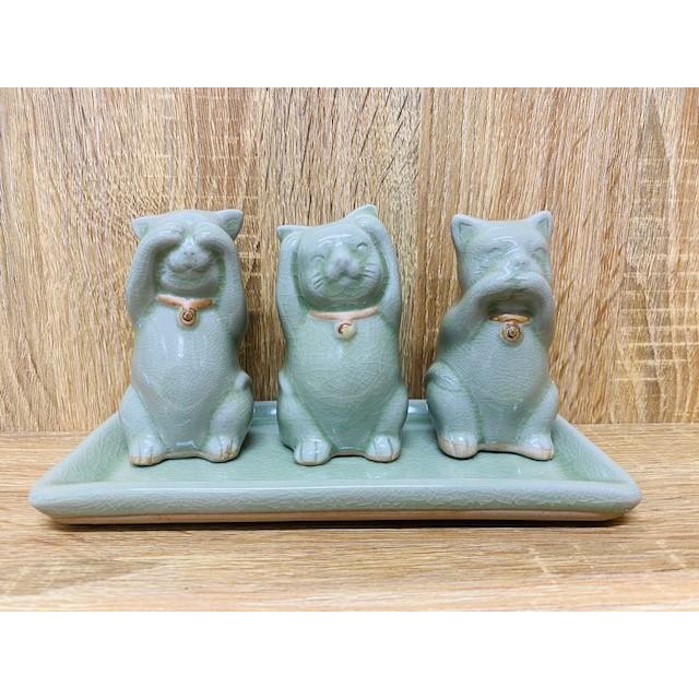 猫の置物 セラドン焼き 置物 皿 猫雑貨 compass1585132253 セレクト雑貨aube yahoo 店 通販 yahoo ショッピング