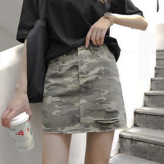 カモフラージュミニスカート レディース スカート ミニ丈 デニム aライン タイト ダメージ チラ見せ カットオフ 切りっぱなし sexy 迷彩 カモフラ 10009891 sweet pocket 通販 yahoo ショッピング
