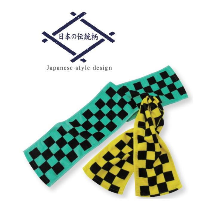 市松模様 タオルマフラー 日本の伝統柄 ポスト投函便可能 鬼退治 和柄 綿100 グリーン イエロー タオル 265 001 jjeyヤフー店 通販 yahoo ショッピング