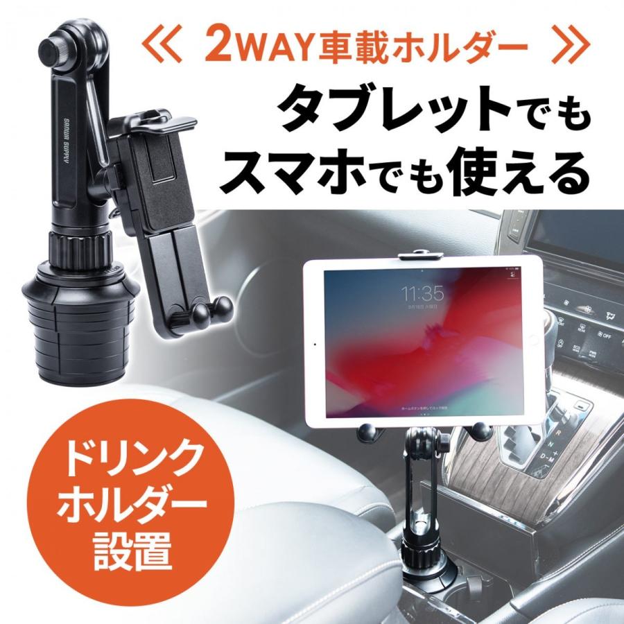 ipad タブレット車載ホルダーアーム カップホルダー ドリンクホルダー設置 9 7 13インチ対応 100 latab007の販売商品 通販ならサンワダイレクト タブレット 車載 ドリンクホルダー ipad 車載
