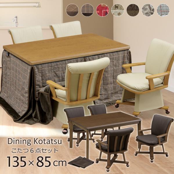 こたつセット ダイニングこたつ 布団付き 6点セット 回転椅子 キャスター付き チェア 和モダン