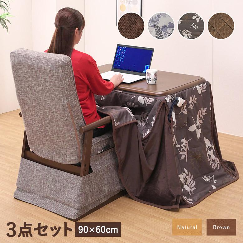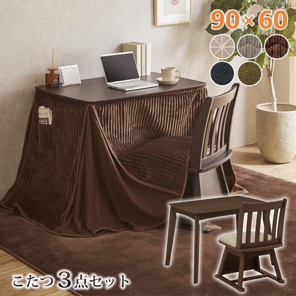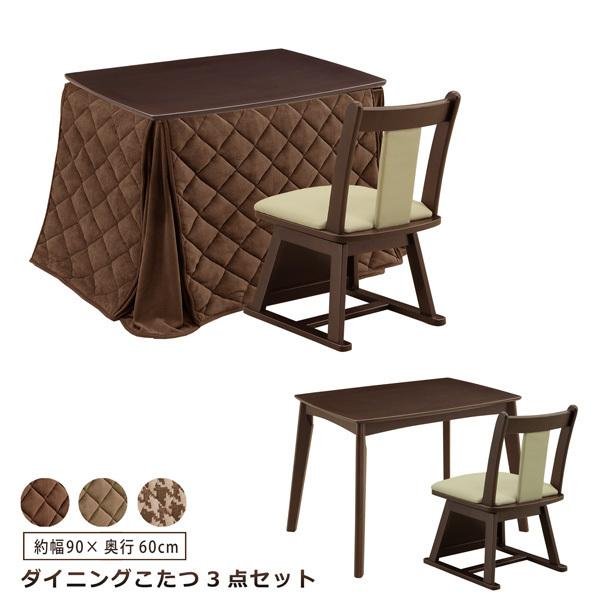 ダイニングこたつ 3点セット 幅90 こたつテーブル 1人用 回転チェア ダイニングチェア 掛け布団 ハイタイプ モダン デスクこたつ