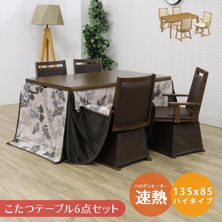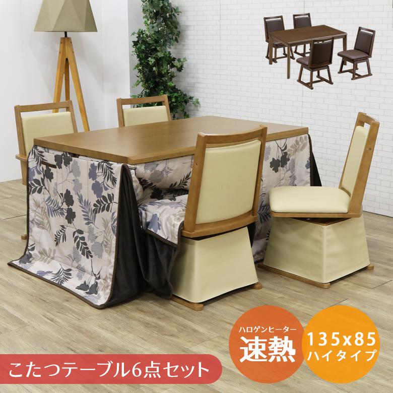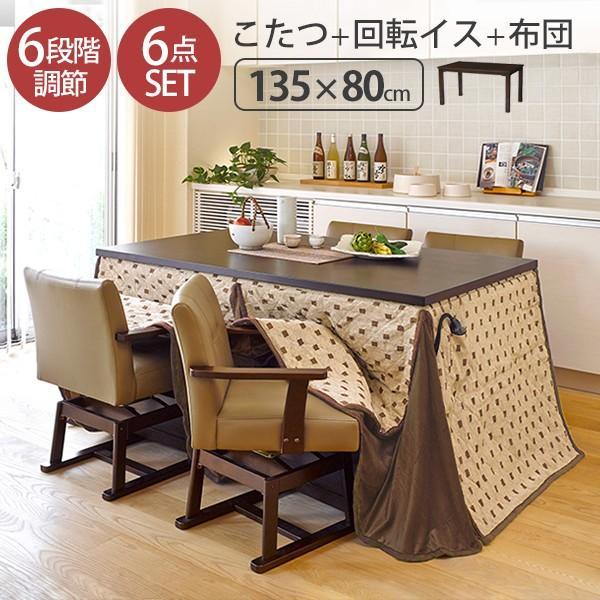 こたつ 長方形 テーブル パワフルヒーター 高さ調節機能付き ダイニングこたつ アコード135x80cm 6点セット こたつ 掛布団 回転椅子4脚 テレワーク mb i 2700131 echizen galo 通販 yahoo ショッピング