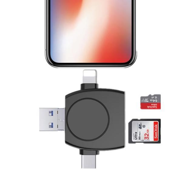 sdカードリーダー 4in1外付メモリーカードリーダー iphone android type c usb 全対応 フラッシュドライブ