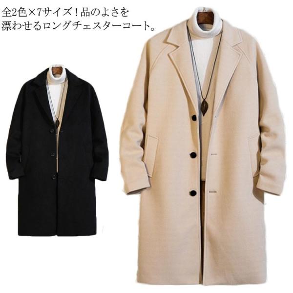 全2色 7サイズ チェスターコート メンズ アウター コート ロング ラシャコート ロングコート チェスター スプリングコート 大きサイズ 通勤 紳士