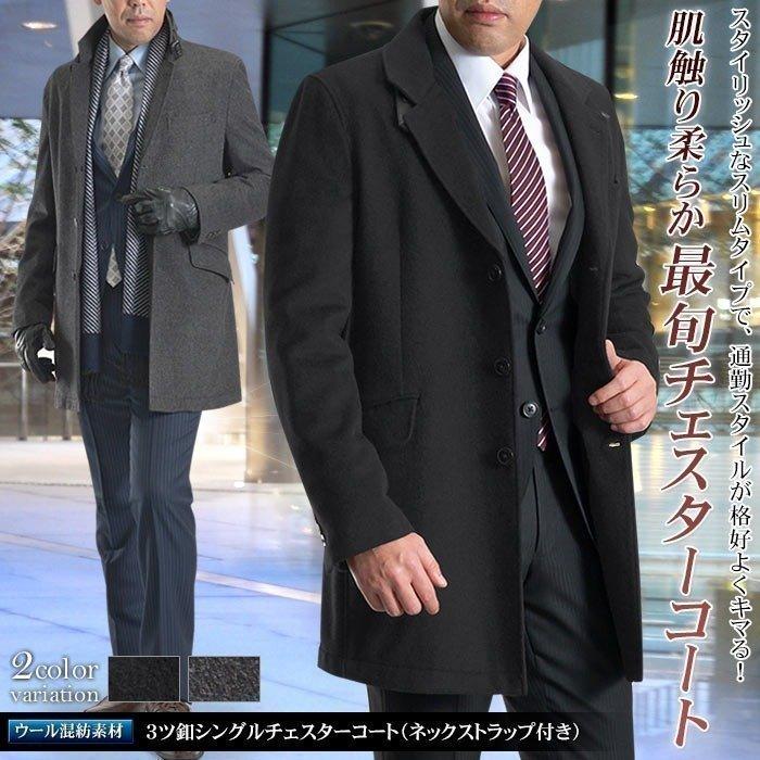 チェスターコート メンズ ビジネス ウール 3ツボタン シングル スリム cb86 スーツスタイルmarutomi ヤフー店 通販 yahoo ショッピング
