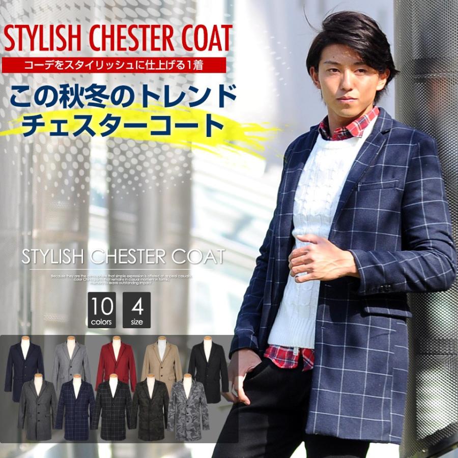 コート メンズ 秋服 冬服 チェスターコート ロングコート イタリアカラー ブラック ネイビー m l 680143 slowgan 通販 yahoo ショッピング