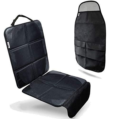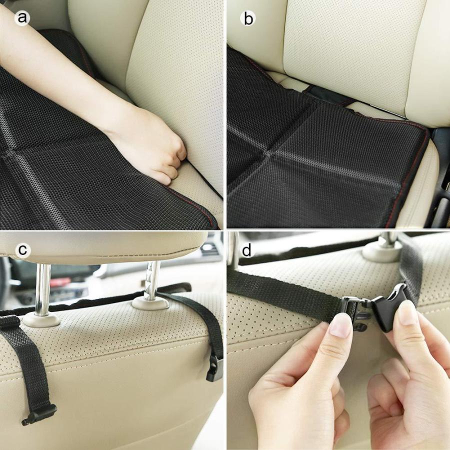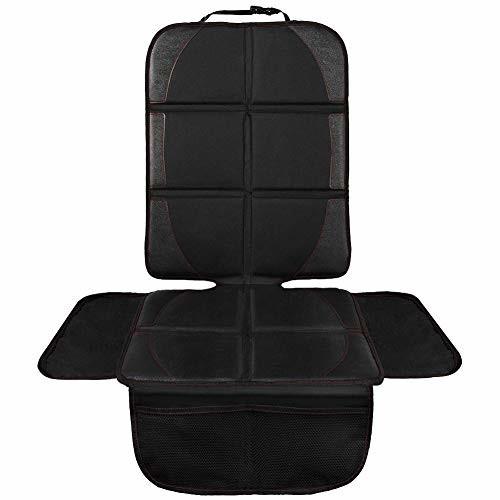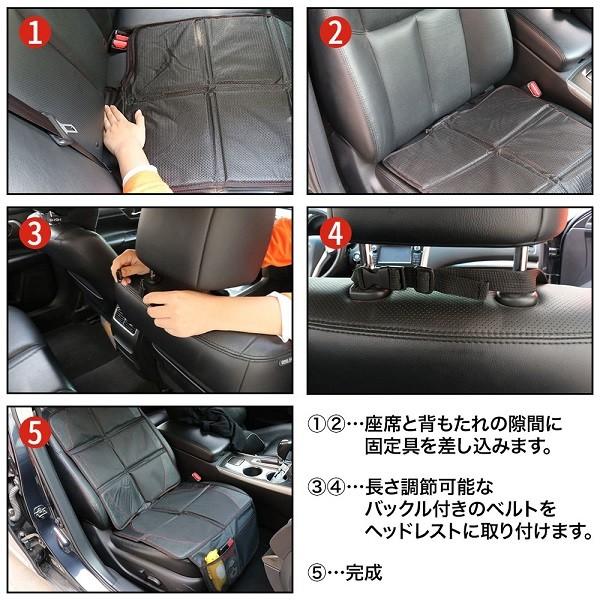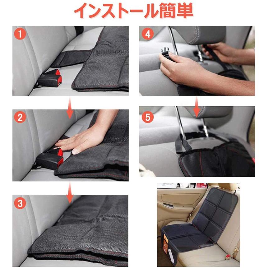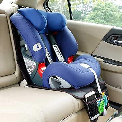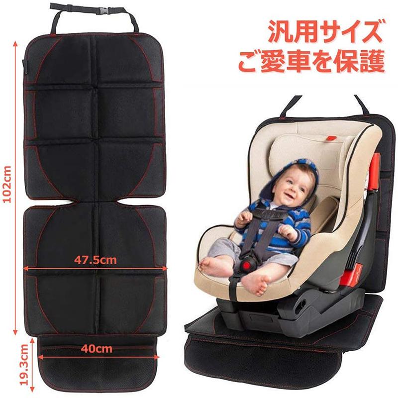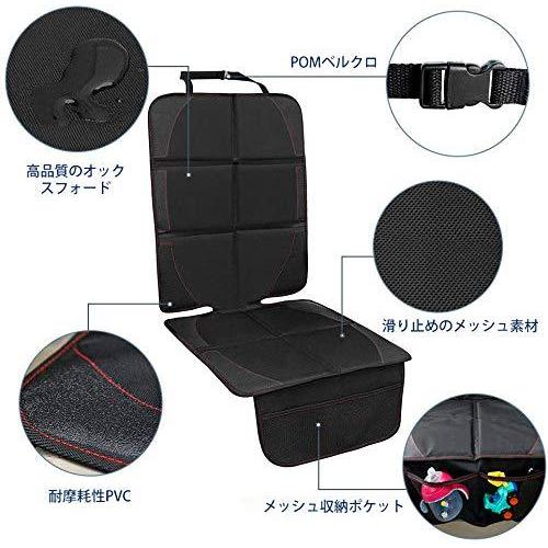 チャイルドシートマット シートプロテクター 滑り止め 車保護マット 多機能メッシュポケット付き ブラック