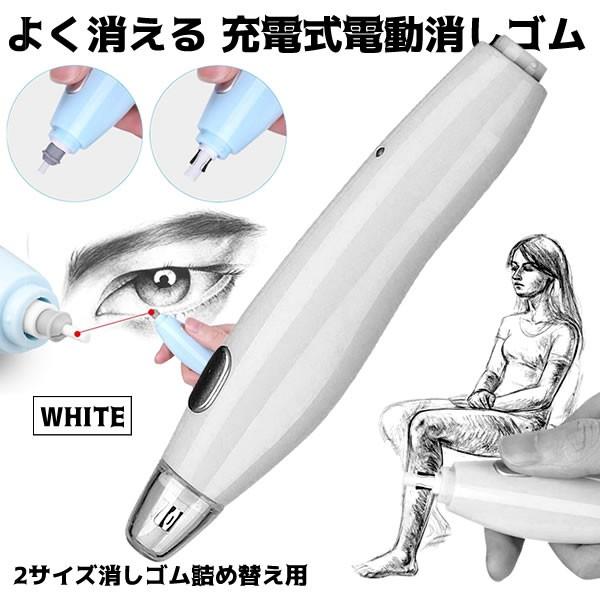 充電式電動消しゴム ホワイト 電動 字 よく消える 静音 替え芯式 絵画 製図用 軽量で便利 子供 プロ 画家 yokukike wh