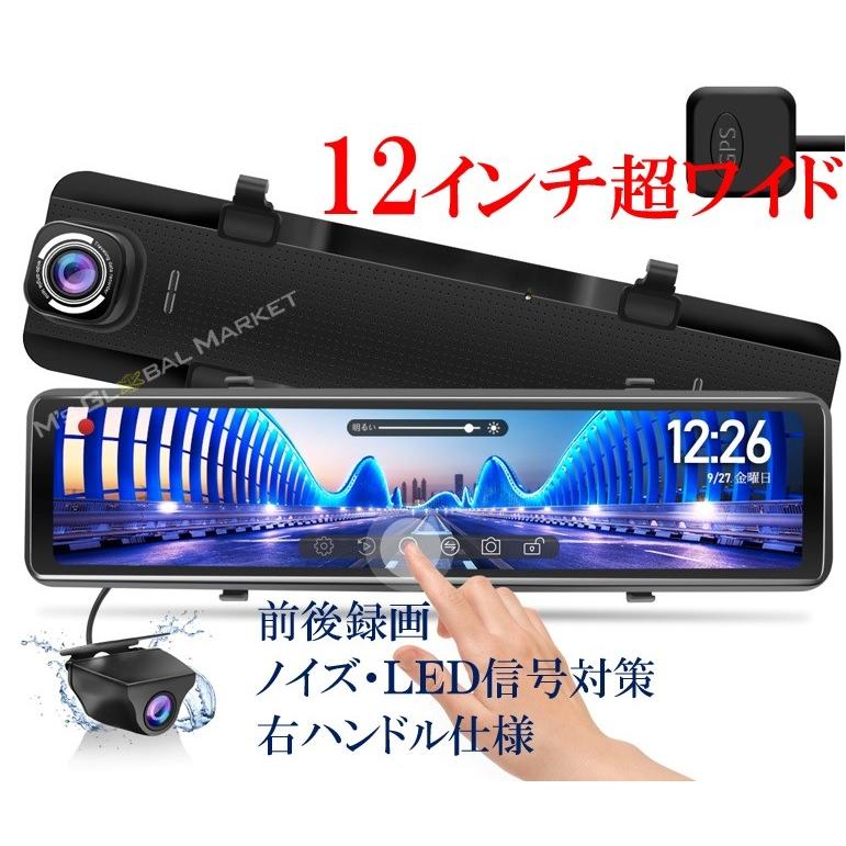 ドライブレコーダー ミラー 前後カメラ 超ワイド12インチ 右ハンドル仕様 デジタルインナーミラー 同時録画 gps 地デジtvノイズ対策済 mg996 12dr エムジーエム 通販 yahoo ショッピング
