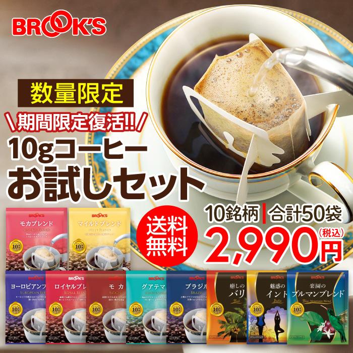 コーヒー ドリップコーヒー ドリップバッグコーヒードリップバッグ ドリップパック 10g お試しセット 10種類 52袋 ブルックス brook s 送料無料 珈琲 yr 1513 ブルックス 通販 yahoo ショッピング