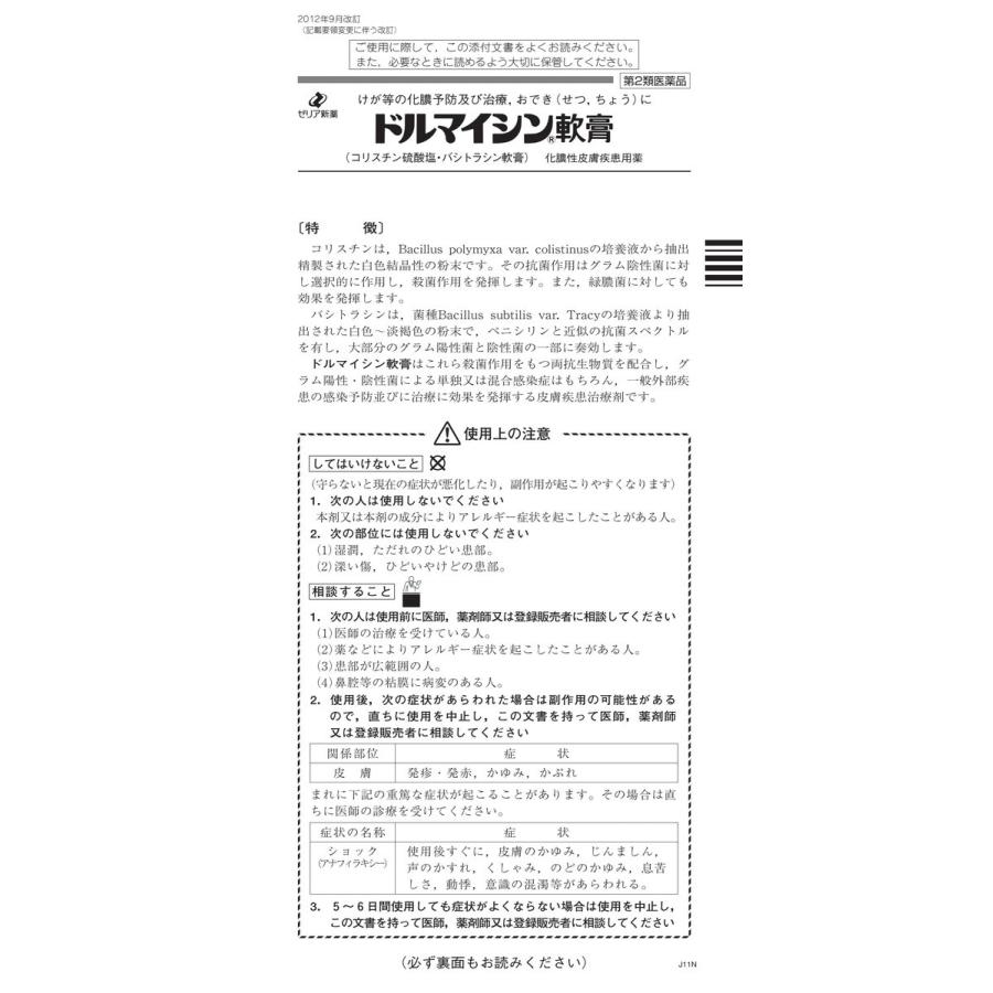 ドルマイシン軟膏 12g ゼリア新薬工業 切り傷 やけどなどの化膿治療 第2類医薬品