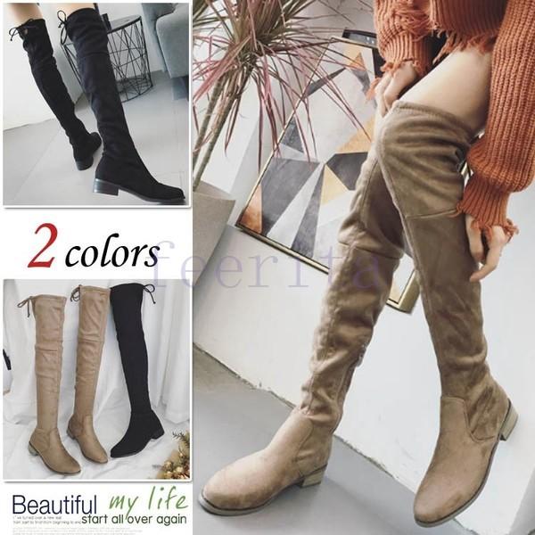 予約 ブーツ レディース ニーハイ ニーハイブーツ ロング ストレッチ ローヒール ぺたんこ 大きいサイズ 小さいサイズ ブラック 黒 スエード ブラウン v1552aw vivian collection 21 26cm対応 通販 yahoo ショッピング