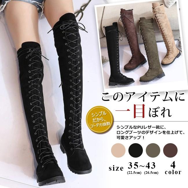ロングブーツ レディース レースアップロングブーツ 編み上げ ロング丈 フラットヒール ニーハイブーツ 美脚 おしゃれ 歩きやすい 全4色 大きいサイズ 01021908bdcx06 ngytomato 通販 yahoo ショッピング