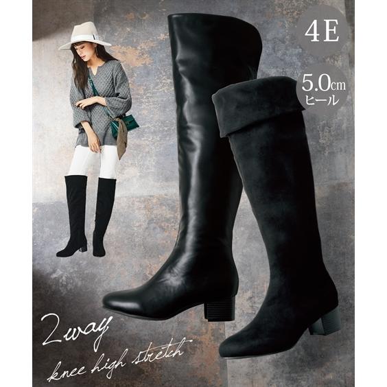 大きいサイズ レディース ゆったり幅 ストレッチ ニーハイ ブーツ ずれ落ち防止ゴム付 低反発中敷 ワイズ4e ニッセン nissen zzy4320e0950 ニッセンyahoo 店 通販 yahoo ショッピング