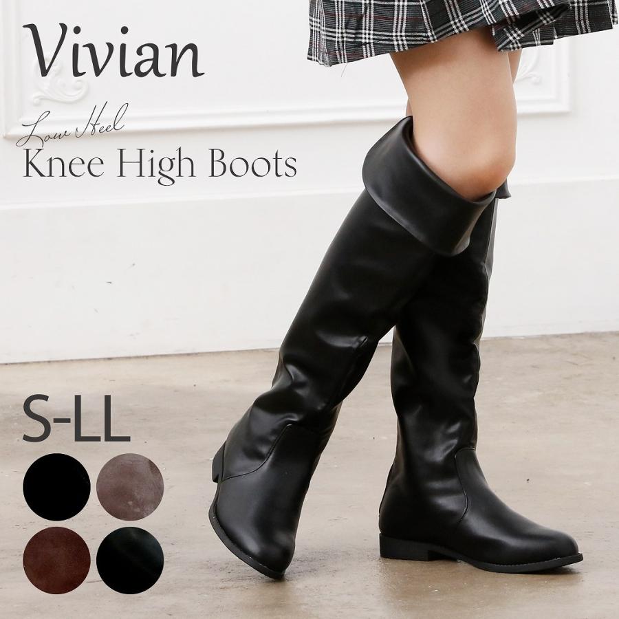 vivian ロングブーツ ニーハイブーツ 痛くない レディース ローヒール ぺたんこ フラット 疲れない 歩きやすい 痛くない スエード ブラック ブラウン グレー 秋 v0064awi vivian collection 21 26cm対応 通販 yahoo ショッピング