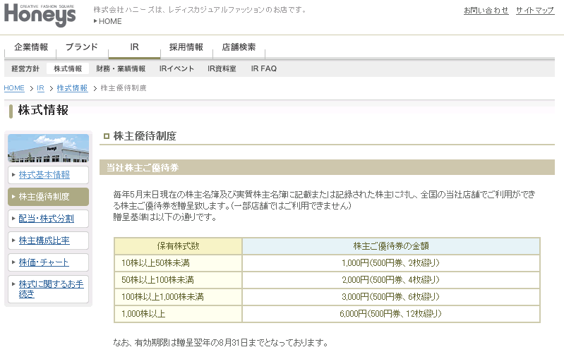 ハニーズホールディングス 2792 株主優待 優待券でお洋服 2020年5月末からは端株優待終了へ wisewideweb