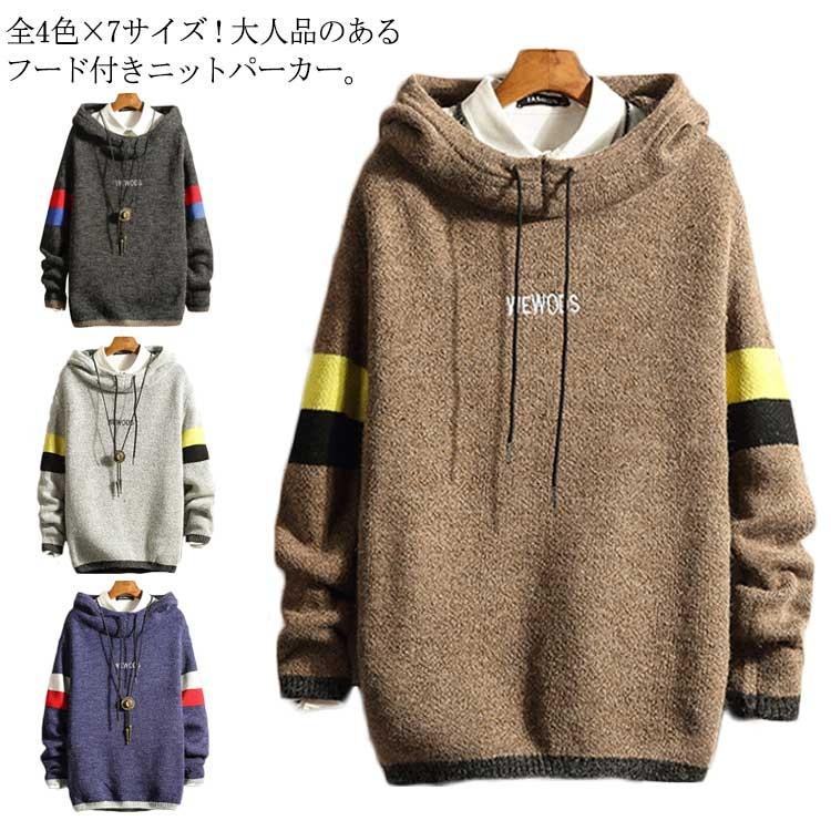全4色 7サイズ ニットパーカー フード付き パーカー メンズ ニット トップス プルオーバー パーカー 配色 大きサイズ カジュアル 春服 秋服 メ fkc444 elevenoneヤフー店 通販 yahoo ショッピング
