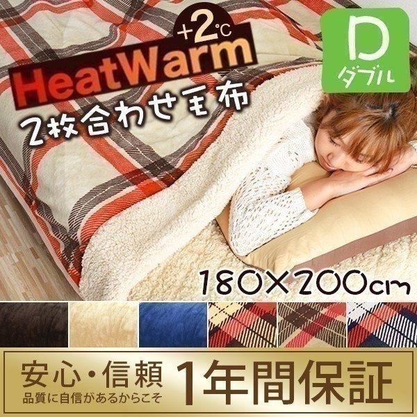 毛布 2枚合わせ毛布 ダブル プラス2 ぬくぬくボリュームタイプ 発熱繊維 ヒートウォーム マイクロファイバー毛布 厚手 静電気防止 送料無料