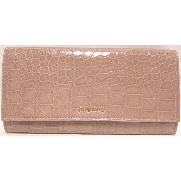 ミュウミュウ miumiu クロコ型押し 長財布 ピンクベージュ 5m1109 st cocco lux mughetto