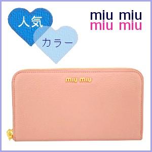 miu miu財布 ミュウミュウ ラウンドファスナー長財布 madras miu 5ml506 ベージュピンク ピンク