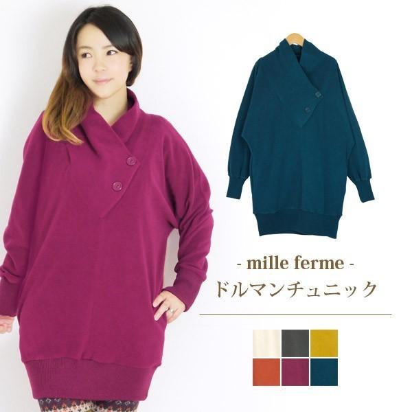 ミルフェルム おしゃれ 授乳服 裏綿フリース ドルマンチュニック 産後 母乳育児 安い 可愛い 着る 授乳ケープ
