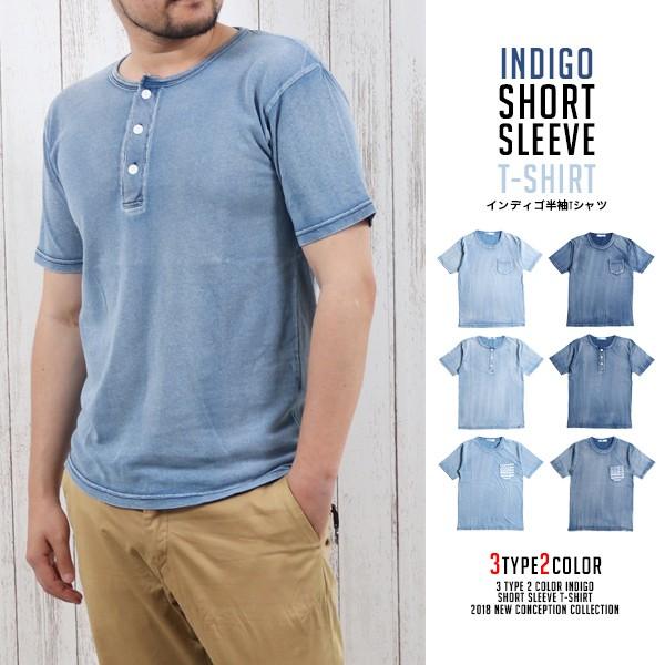 メール便のみ送料無料1 インディゴ半袖tシャツ tシャツ インディゴ デニム 藍染 半袖 デニムtシャツ ユーズド加工 メンズ 春夏