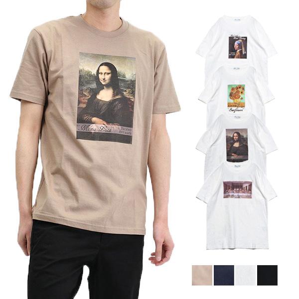 tシャツ カットソー メンズ 半袖 おしゃれ プリント 絵画 オマージュ 綿100 コットン クルーネック トップス