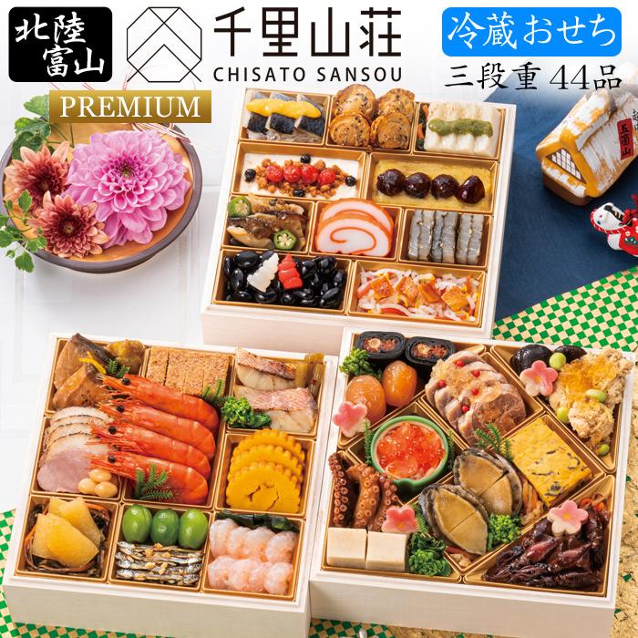 おせち 予約 2021 冷蔵おせち 富山 千里山荘 おせち料理 三段重 45品 4人前 冷蔵 盛り付け済み ggk 91 美食サークル にしき堂館 通販 yahoo ショッピング
